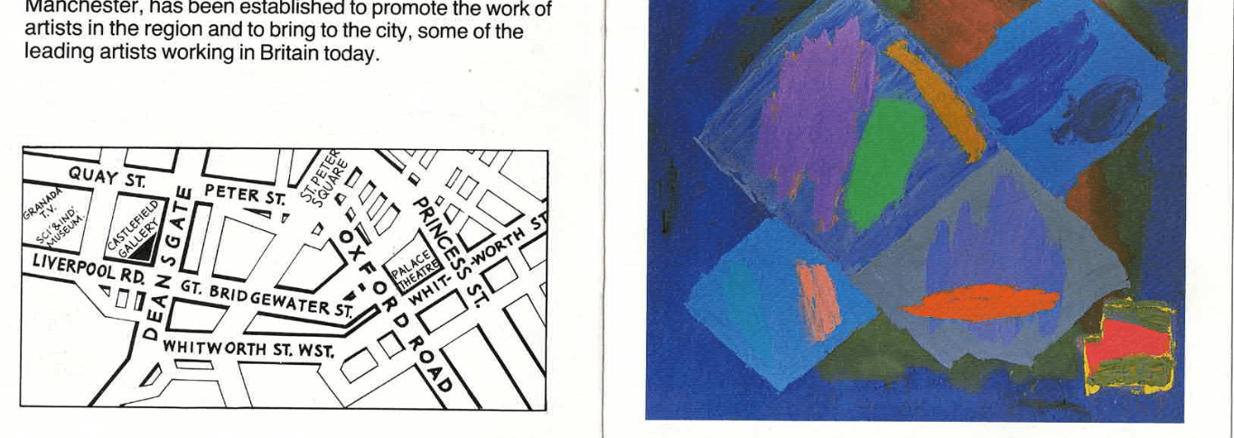 The initiation of the Castlefield Gallery marks the beginning of a new commitment to visual art in the region – an interest that will be followed up in 1985 when Manchester’s long-awaited complex for contemporary visual arts will open. Castlefield Gallery’s raison d’etre however remains distinct and we believe it will prove to serve a vital complementary role to the Arts Centre, since the Castlefield is run independently by the Manchester Artists’ Studio Association who are, crucially, artists themselves.