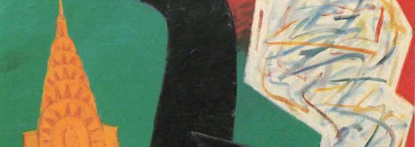 These brightly and imaginatively coloured paintings and gouaches were inspired by the artist’s recent visit to the States. The well-known landmarks the Empire State and Chrysler buildings appear throughout the series, alongside images which have been painted by Fabian Peake for some time, the large ties in particular. A profile helmet-head shape is used to convey his sense of isolation in the midst of the bustle of the city. Jazz is another important theme, referring to New York and to the painter’s own interests. Large saxophones are depicted as emphatic flat forms, and vibrant jagged shapes, containing expressive brush strokes evoke the sounds and rhythms. Fabian Peake explores his subject matter by continually reworking, changing and reducing it. Rapidly the images are no longer recognisable as buildings, instruments or figures but become impressive formal shapes.