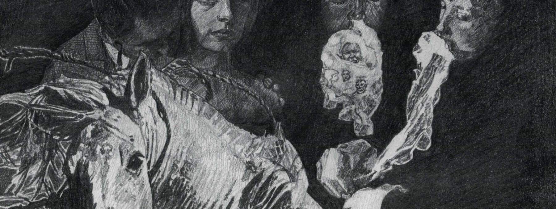 To coincide with the exhibition Castlefield Gallery is publishing the latest instalment ‘The Masterpiece, Part 4 – A Weekend in the Country’. Nick and his crowd of fellow bohemians are invited to a large country house for the weekend by Norman the art dealer. Things become increasingly sinister as a Spiritualist character intuits that Nick is having problems with the ghost of his old mentor (who he murdered in episode 2), Norman turns out to be the head of a bizarre religious cult, and there is an appearance by a sheep-headed man…