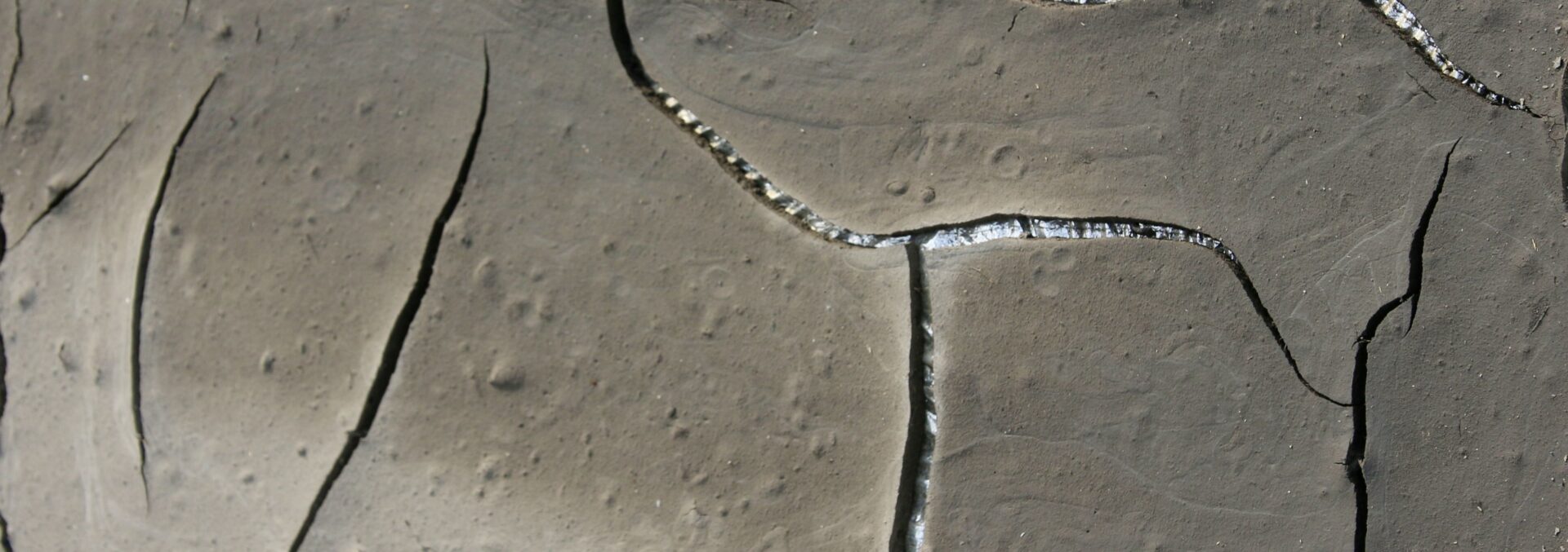 - Ashleigh Beattie. Cracked Earth 2025. Detail Clay on foil. Dimensions variable. Detail, image courtesy of the artist