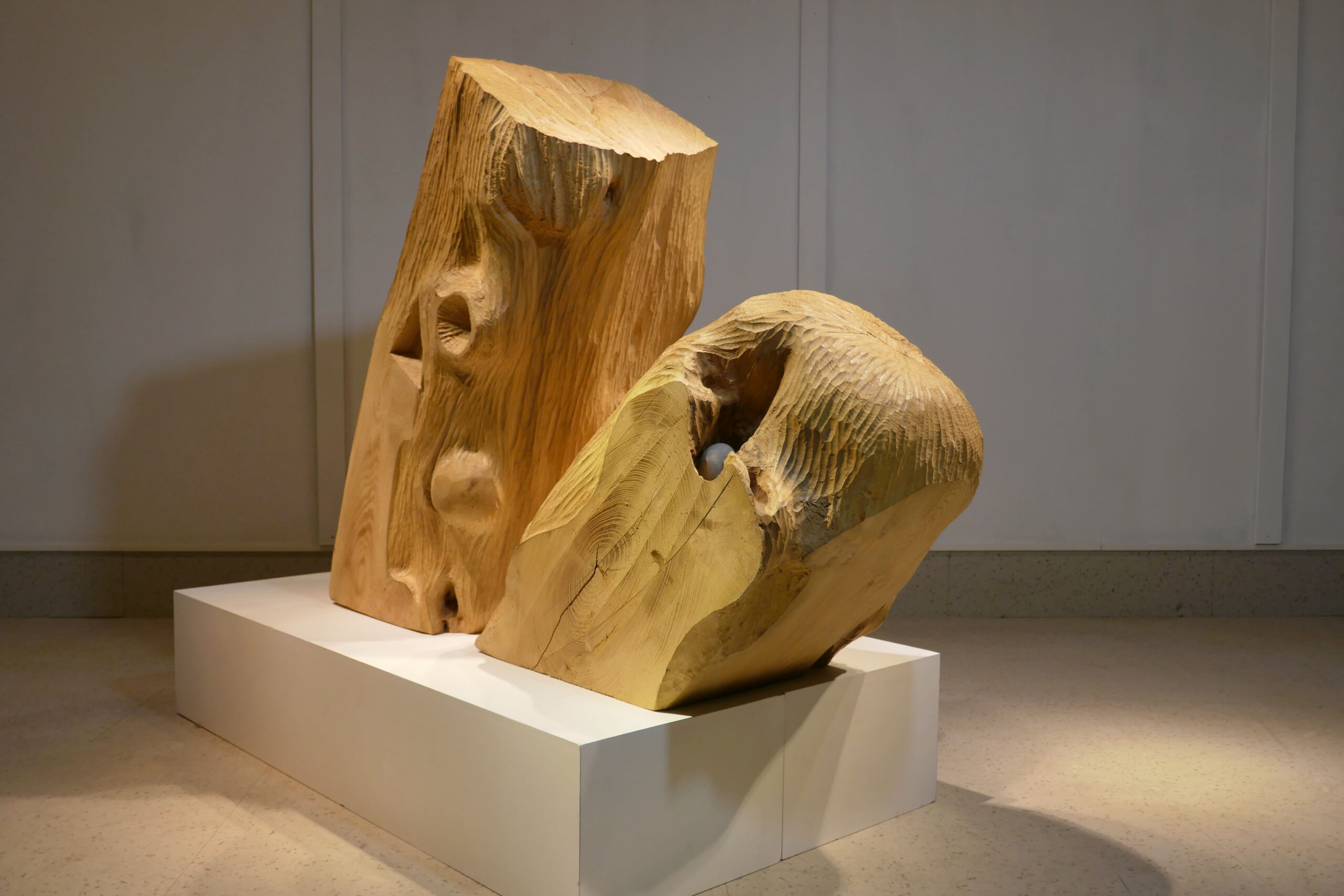 Steve Sutton works with naturally occurring found materials such as fallen trees, beach pebbles, and animal remains, as well as appropriated materials discarded by other people. His work is influenced by a longstanding physical relationship with the land. Years spent working with wood and other materials to maintain a farm have earned him many skills and experiences that inform his art practice. He responds carefully to the characteristics and possibilities of his materials, bringing them together with a mixture of labour intensive techniques and delicate but purposeful placement.