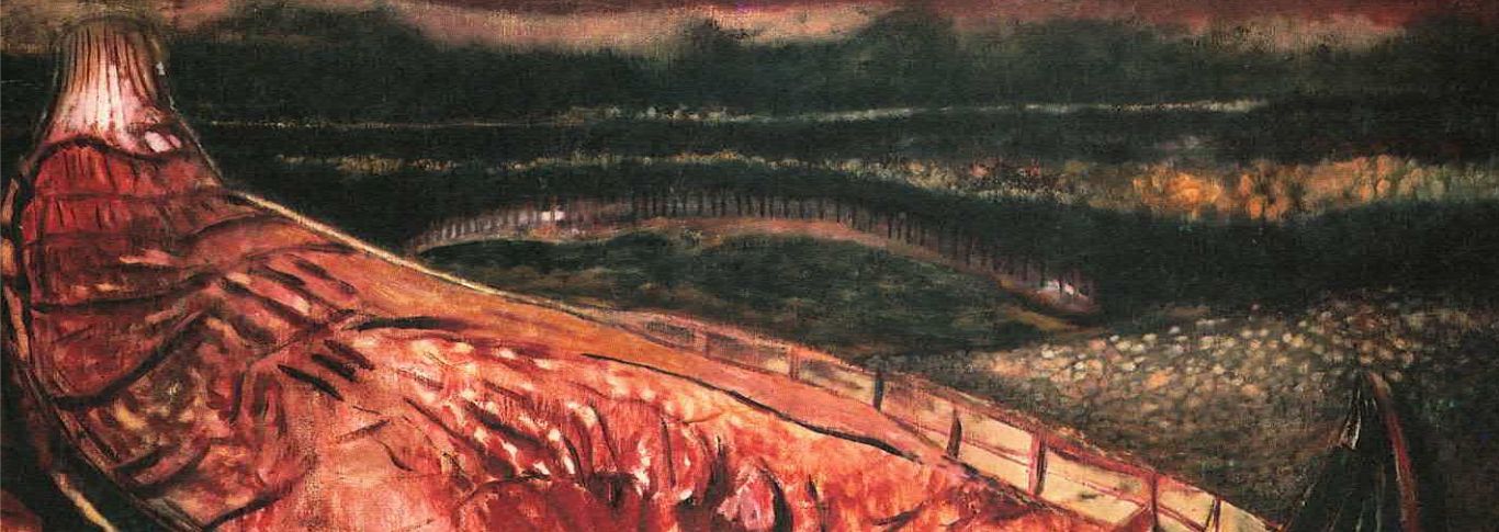 Andrzej Jackowski makes paintings of great beauty that have also profound depth. Recurring images appear: the hut on wheels, the upturned boat, the boat that contains a landscape within it, giant heads on their side, the ‘Brides’ series, with their emphasis on the female spirituality. It is a poetic vision and (perhaps) provides to the painting what Tarkovsky gave to cinema.