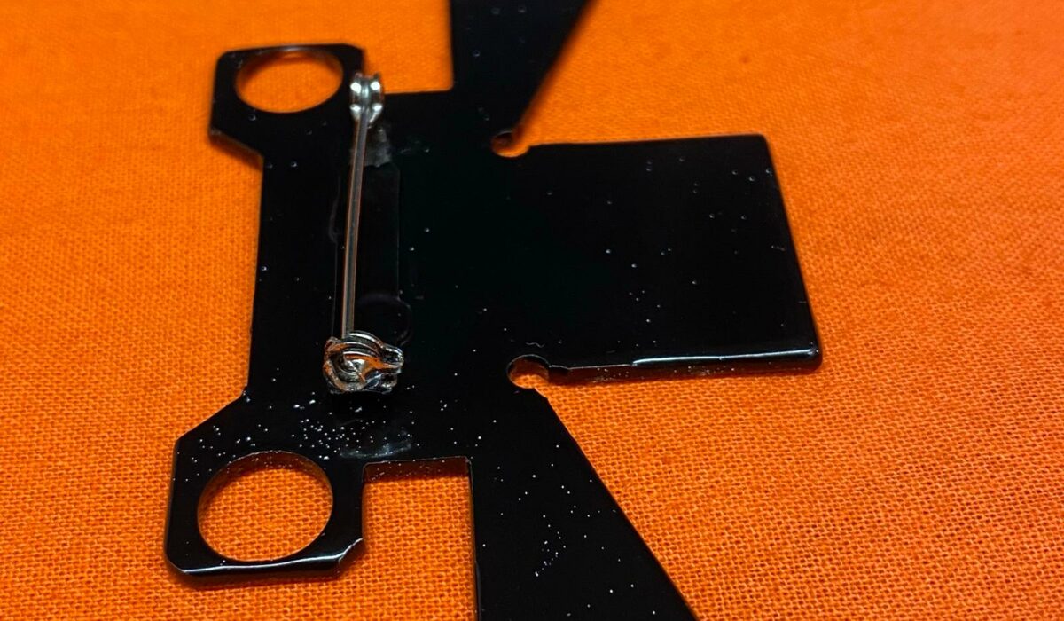 The jewellery design in the first instance is determined by the existing CAD files, punched out of steel sheets as part of the manufacturing process. They are then carefully hand finished by the artist in the factory’s powder coating facility, combining machine and human labour. Since 2018, Ellis has been artist in placement at the factory, where she has been working closely with experienced members of the Ritherdon team; observing, participating in, and at times, disrupting the ecosystem of the factory.